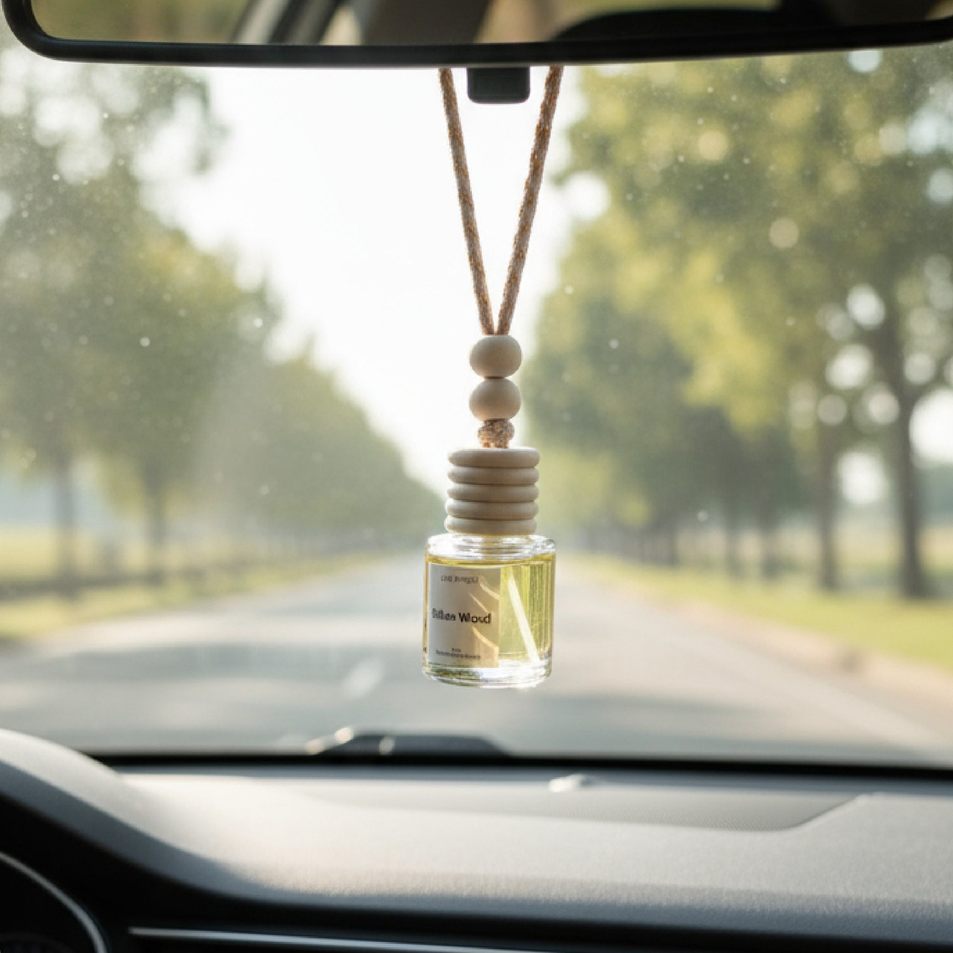 Debes sacar el tapón plastico interno que está bajo la tapa de madera. Posterior a eso colgar del espejo del auto con un nudo.